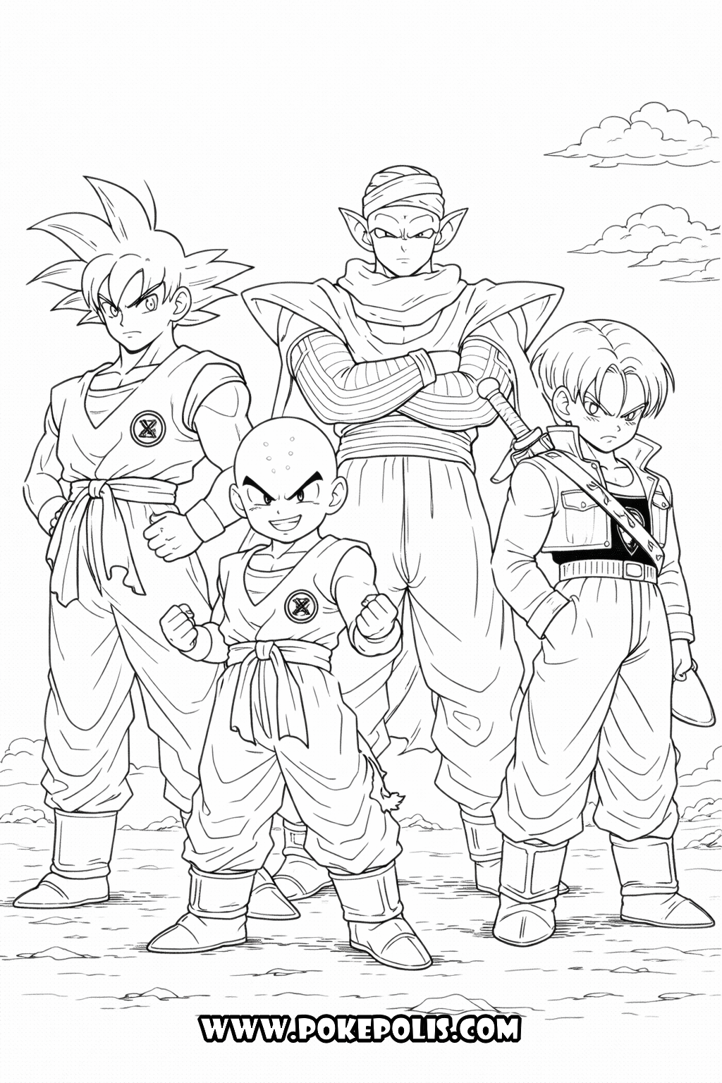 Goku to główny bohater całej serii Dragon Ball. W kolorowankach najczęściej pojawia się w swoim charakterystycznym pomarańczowym stroju oraz z potarganymi włosami. Bardzo popularne są również ilustracje przedstawiające jego transformację w Super Saiyan, gdzie włosy stają się złote, a wokół postaci pojawia się aura energii.